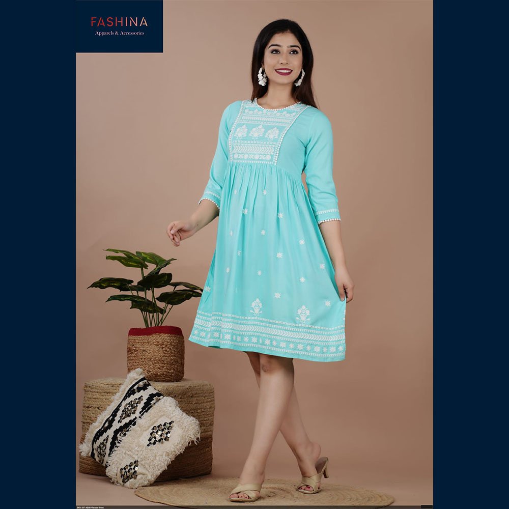 💙 Refreshing aqua blue hue with contrast white embroidery