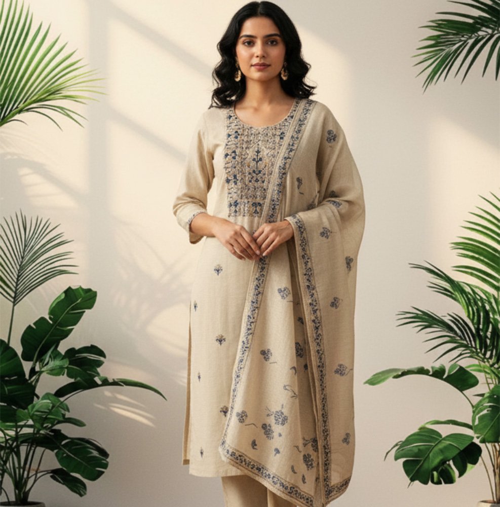 Beige Embroidered Kurta Set