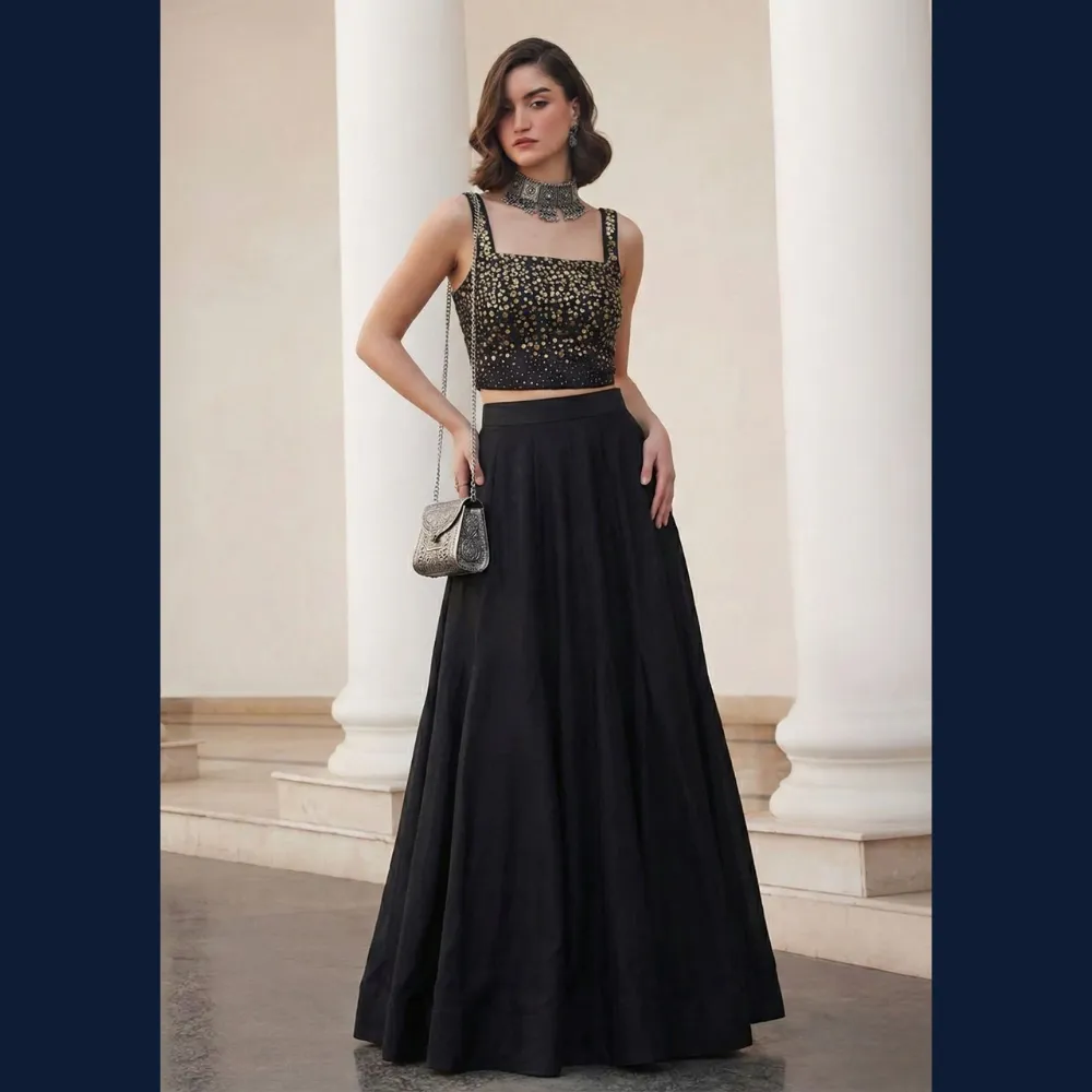 🖤 Elegant black lehenga set designed for timeless evening glamour