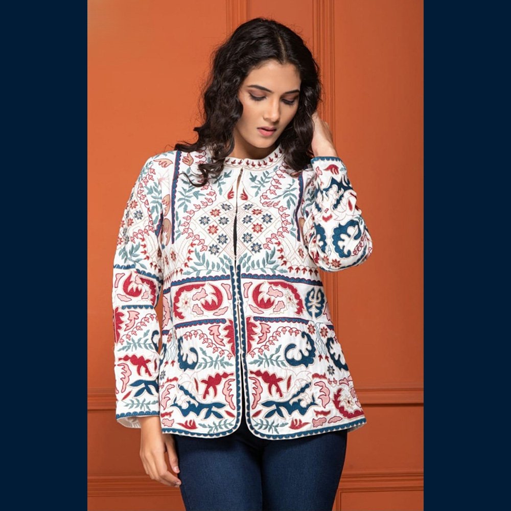 Infuse your outfit with artistic flair in this beautifully embroidered cotton jacket. Pair it with denims for a chic daytime look or layer it over a simple kurta for festive elegance. Its intricate patterns and comfortable silhouette make it the perfect blend of tradition and trend.