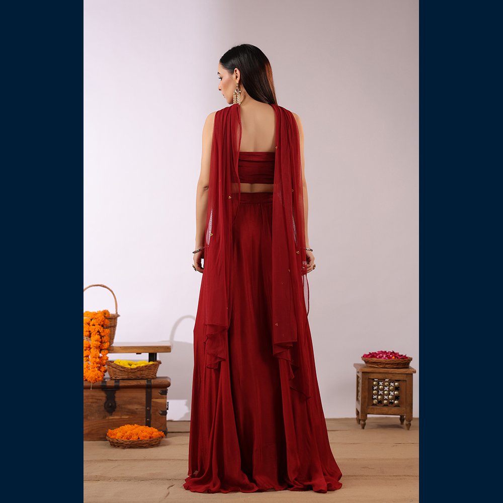• ❤️ Bold scarlet gown with a striking, flowy silhouette.