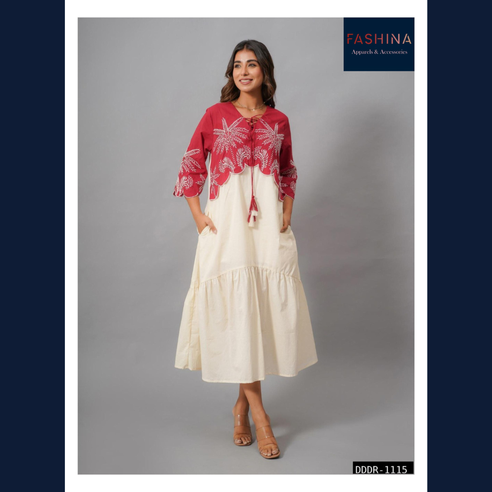 Crimson Ivory Embroidered Dress