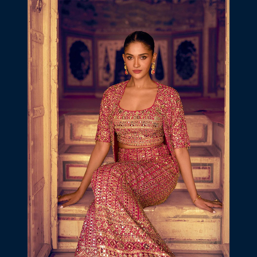 Made for wedding soirées, festive nights, and palace-inspired celebrations. Style with statement earrings, sleek hair, and confidence—because this one doesn’t whisper luxury, it announces it.