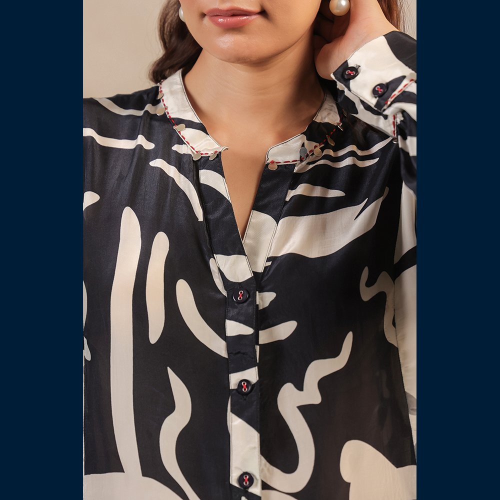 Team it with fitted black trousers or skinny denim, add pearl earrings, and finish with sleek heels—serving classy, confident, and totally put-together energy. Perfect for brunch dates, office days, or evening outings!