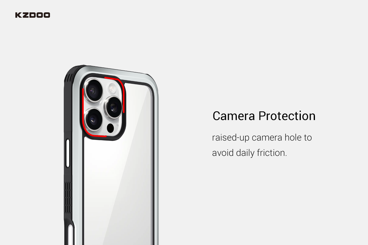 Raised bezels around the camera and screen to prevent scratches.