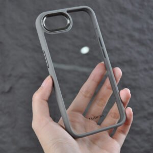 > Raised metallic pink ring surrounding the camera module for enhanced lens protection.