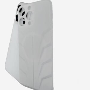 The back has subtle, angular groove patterns that give it a futuristic, geometric look while also adding grip.