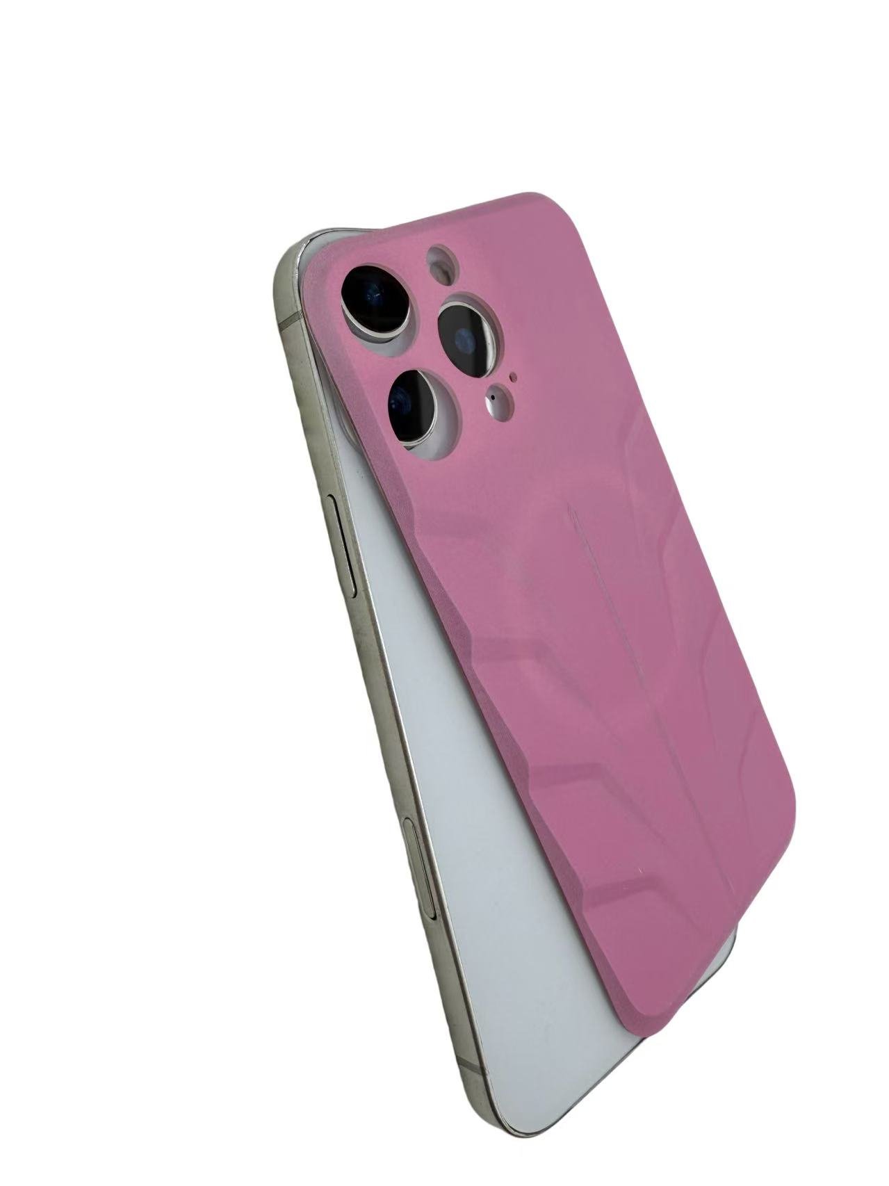 This phone case is made of metal and features a sleek, modern design in a matte pink finish.