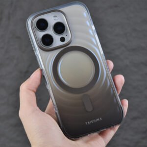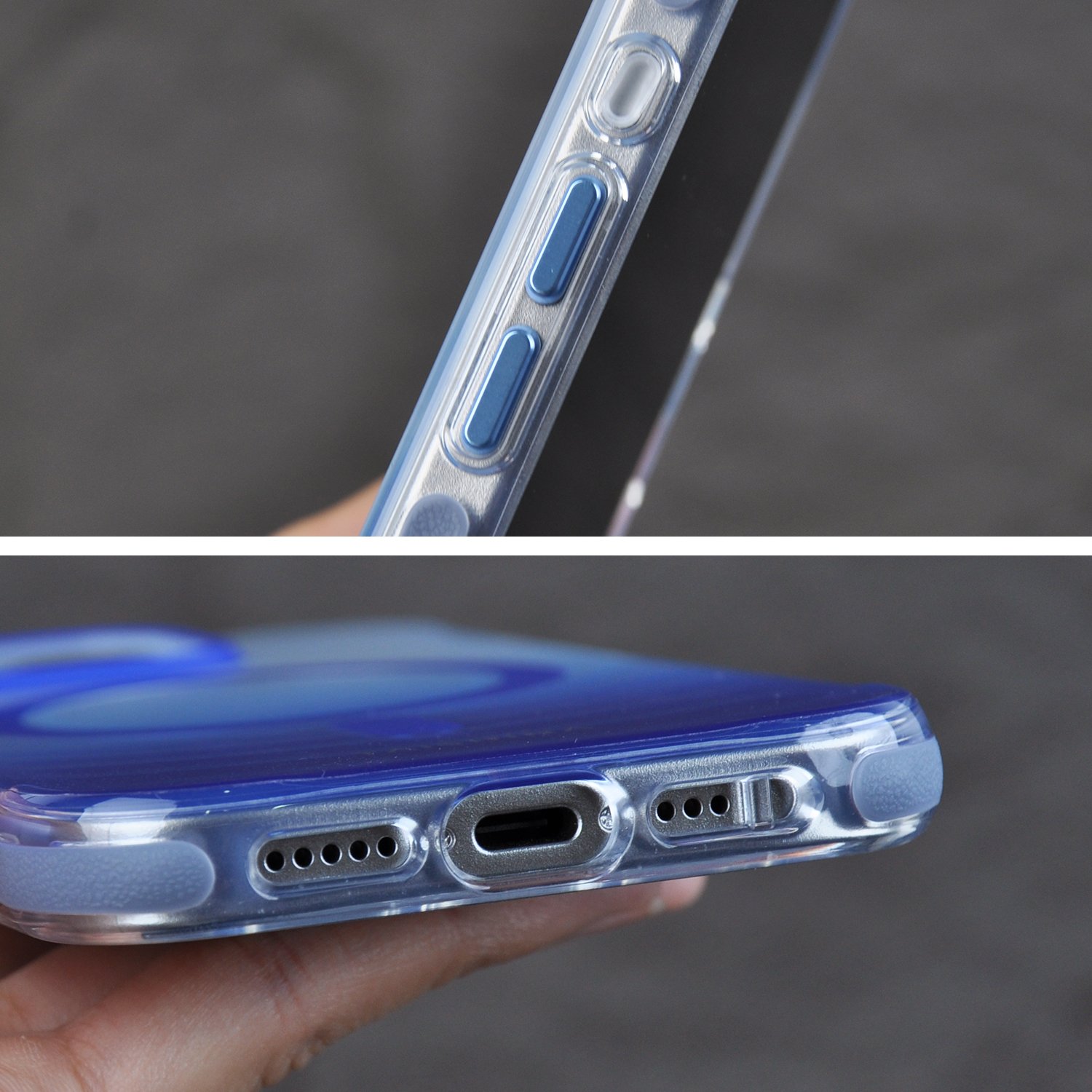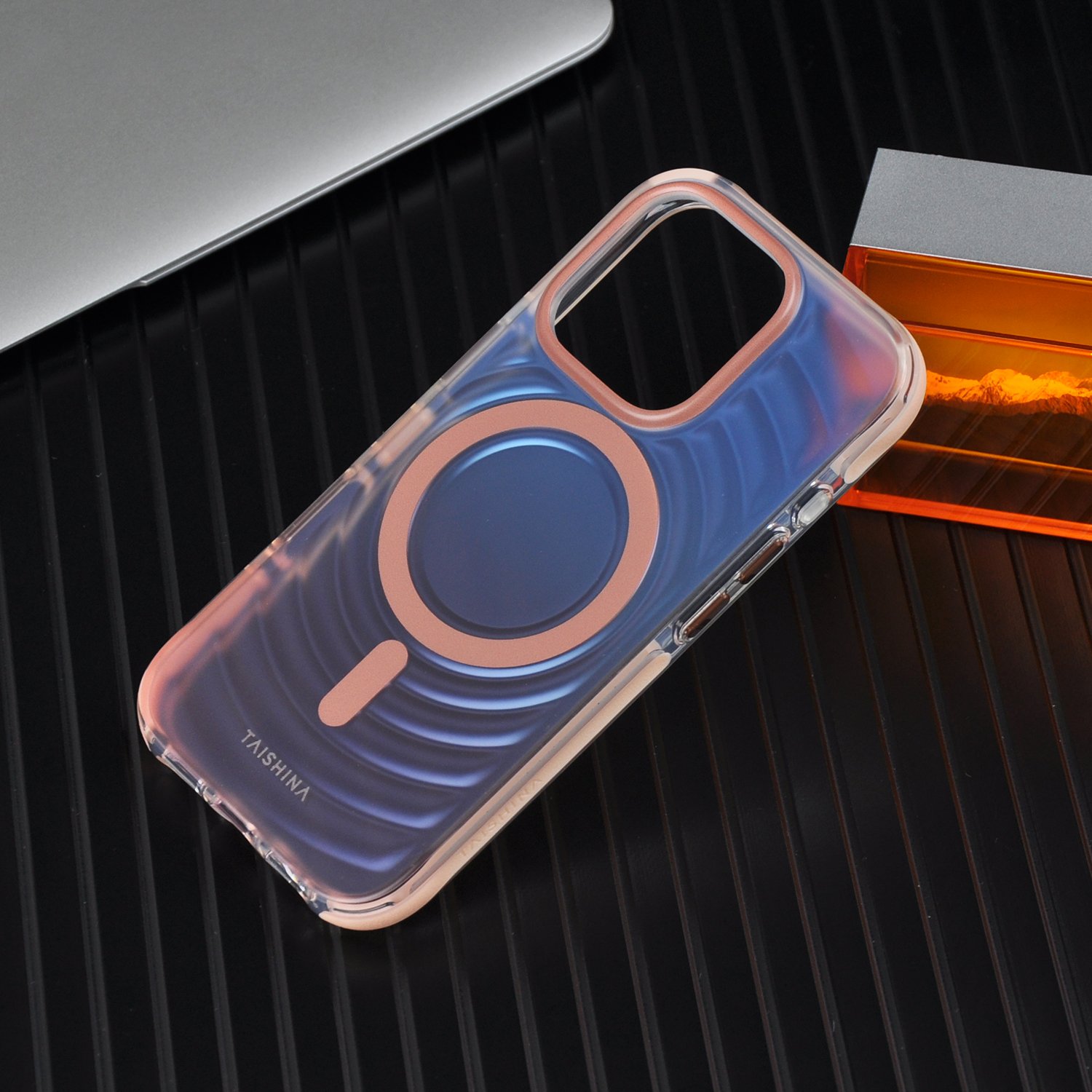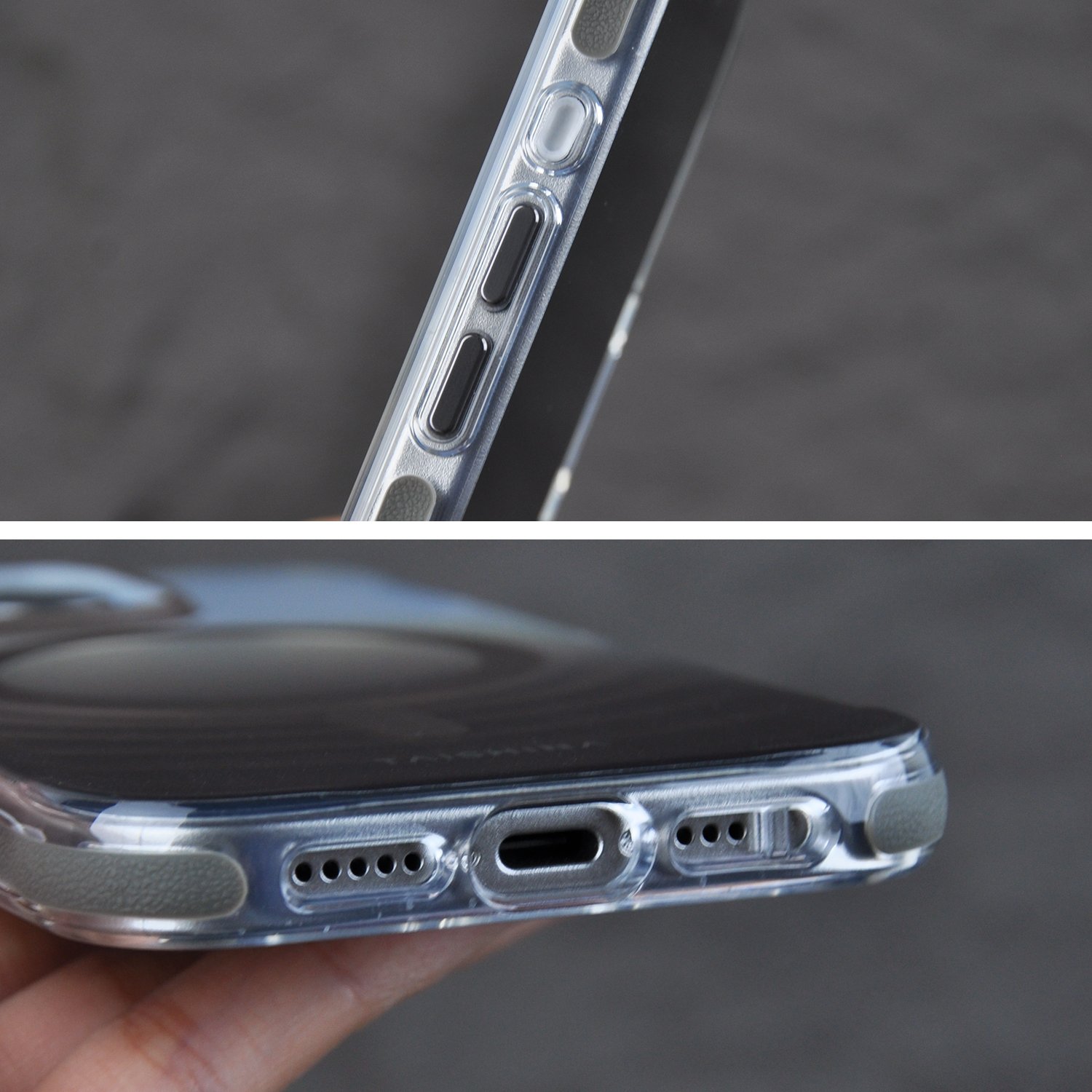 > Features a prominent MagSafe ring and alignment marker, allowing it to work with all MagSafe accessories.