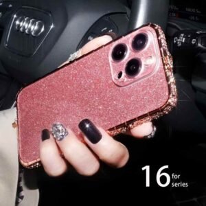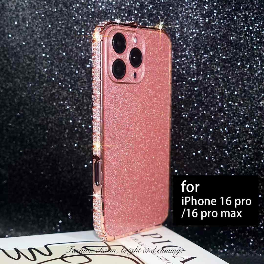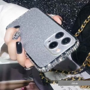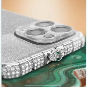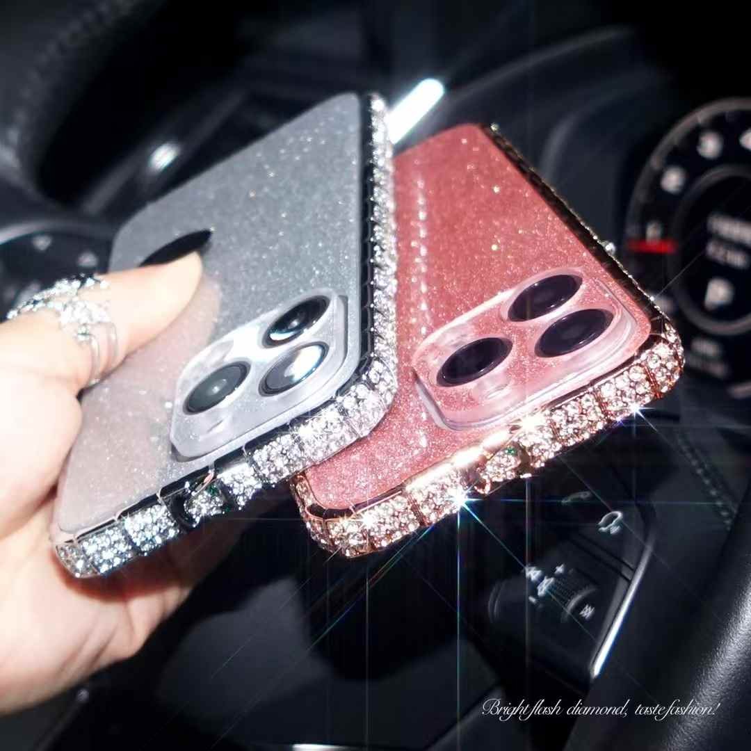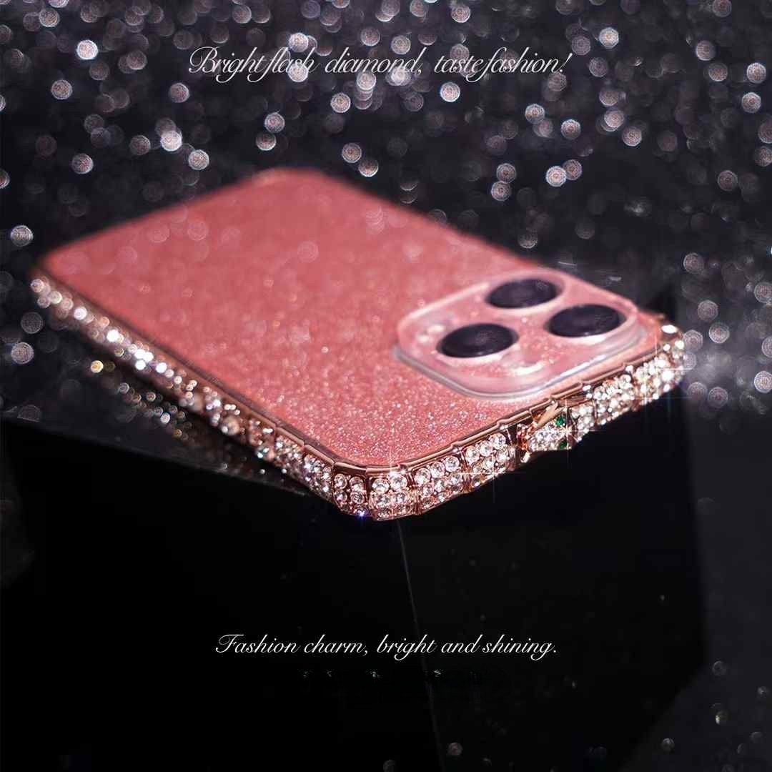 The edges of the case are encrusted with rhinestones or imitation diamonds, giving it a jeweled, luxurious look.