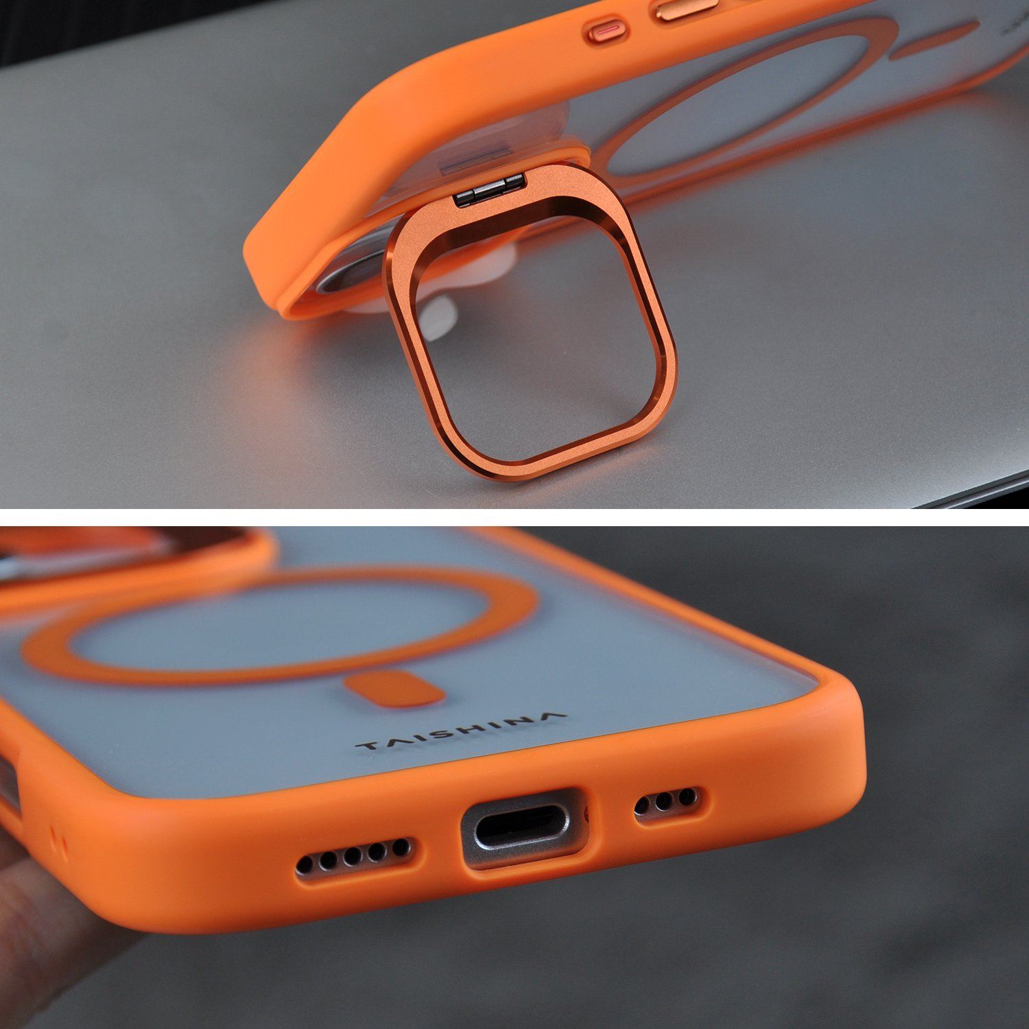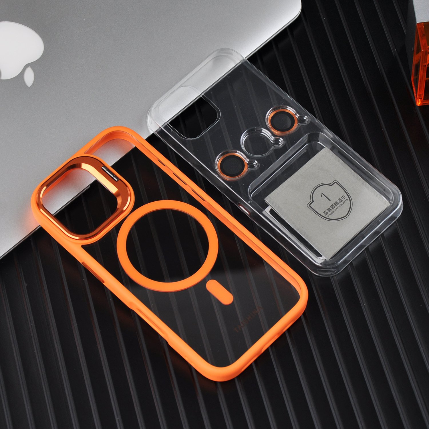 The raised metallic orange camera ring keeps the camera lenses from directly touching surfaces, reducing the risk of scratches and cracks.