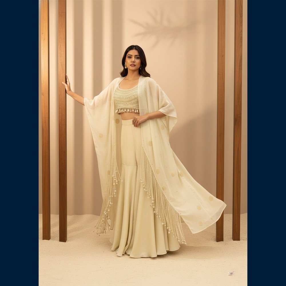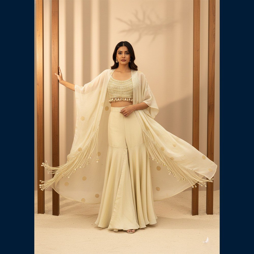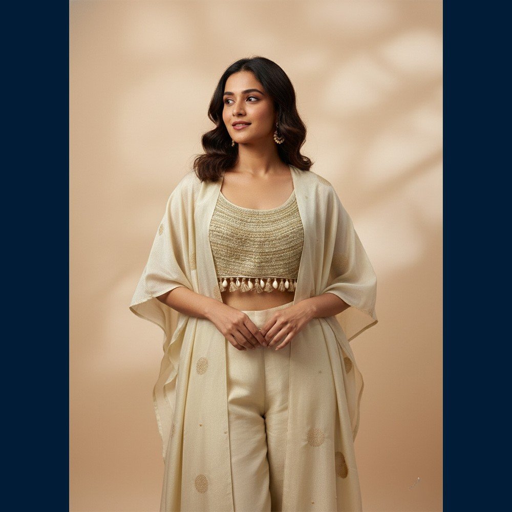 🤍 Elegant ivory co-ord with a soft, flowy silhouette.