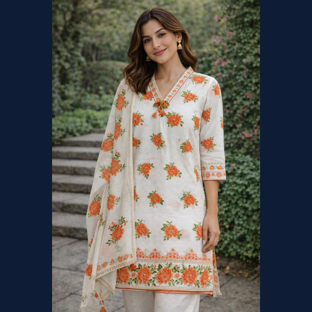 Ivory Floral Printed Kurta Set