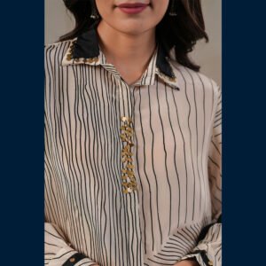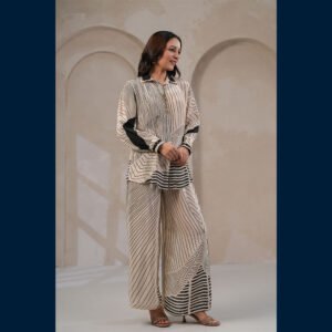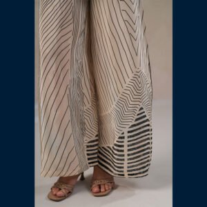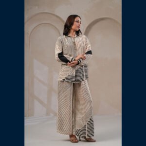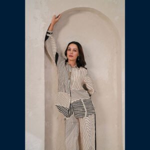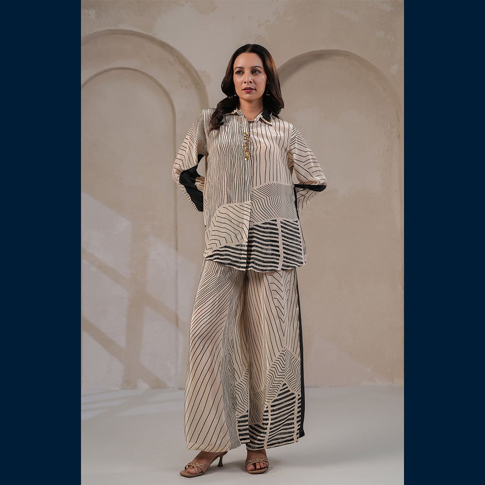 🤍 Elegant ivory co-ord with bold black line patterns