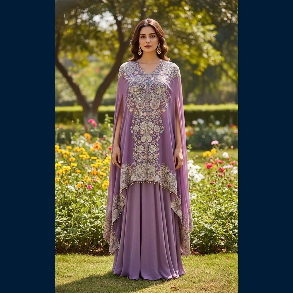 A soft lavender cape set that brings major royalty-without-trying vibes 💜✨