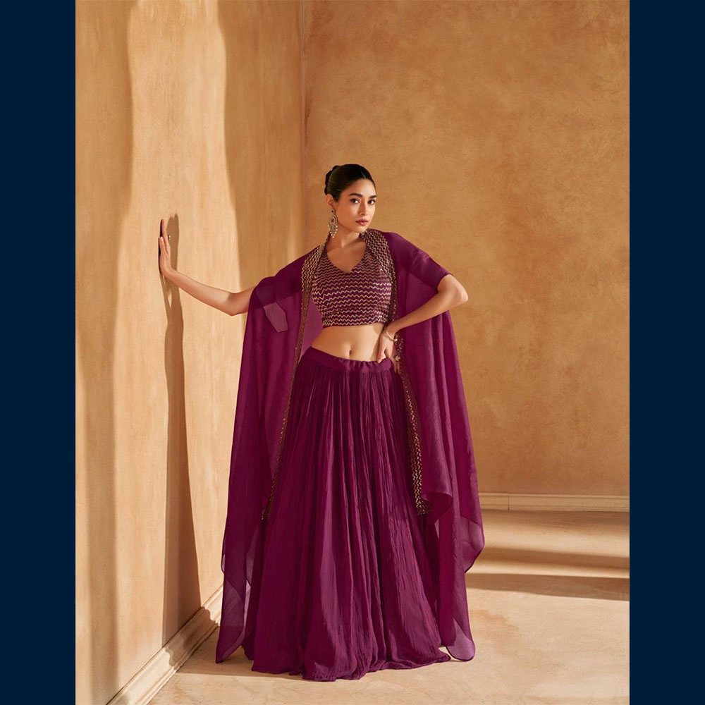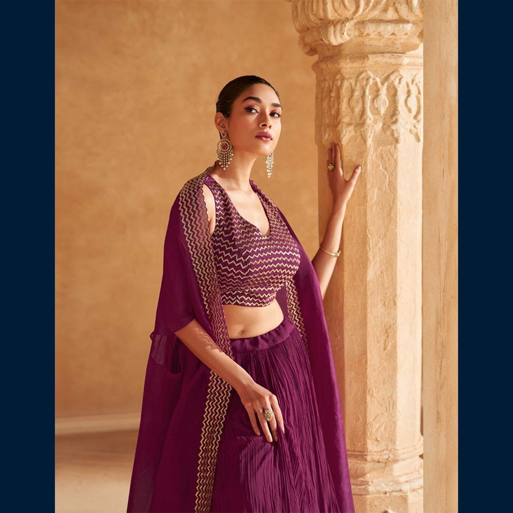 • 👗 Flowing, finely pleated lehenga for graceful movement
