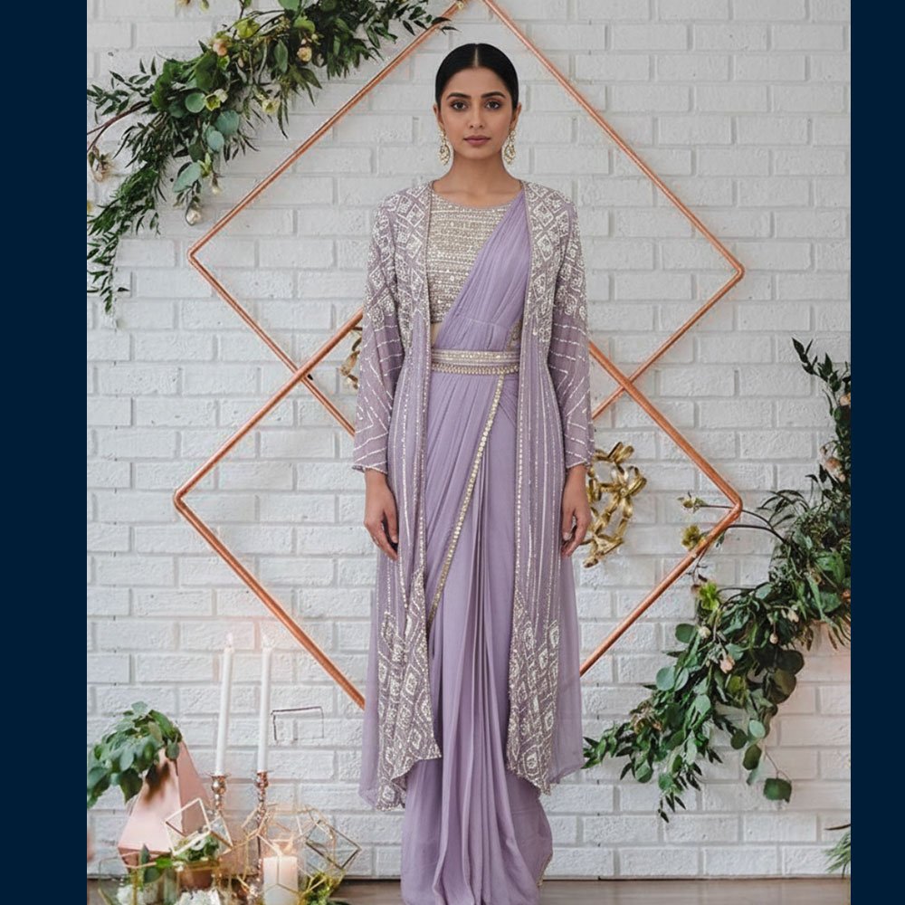 Soft lilac drape-style suit with a flowy fall that gives instant regal elegance 💜✨
