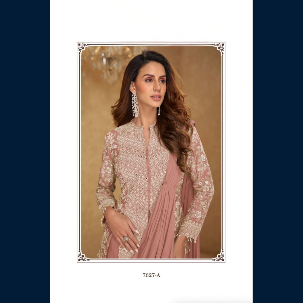 👑Pair the Mirza set with statement earrings or chandelier jhumkas, sleek heels, and a polished low bun or soft waves. Keep makeup luminous with neutral eyes and a soft rosy or nude lip—let the embroidery do the talking ✨
