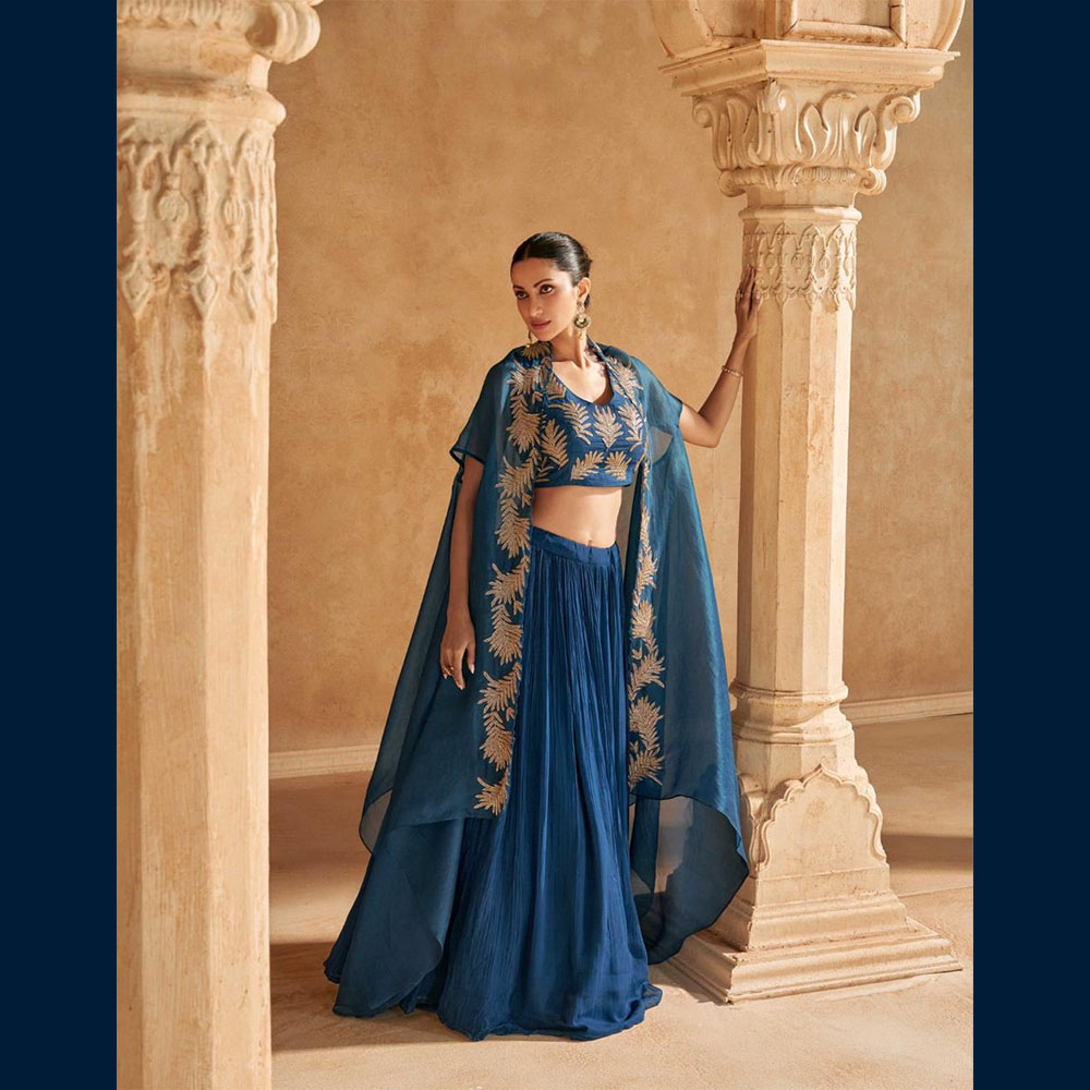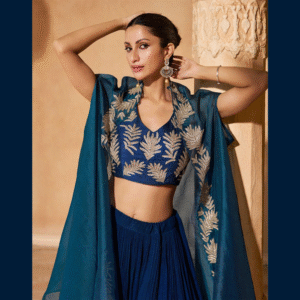 🧥 Flowing embroidered cape adding movement, grace & modern flair