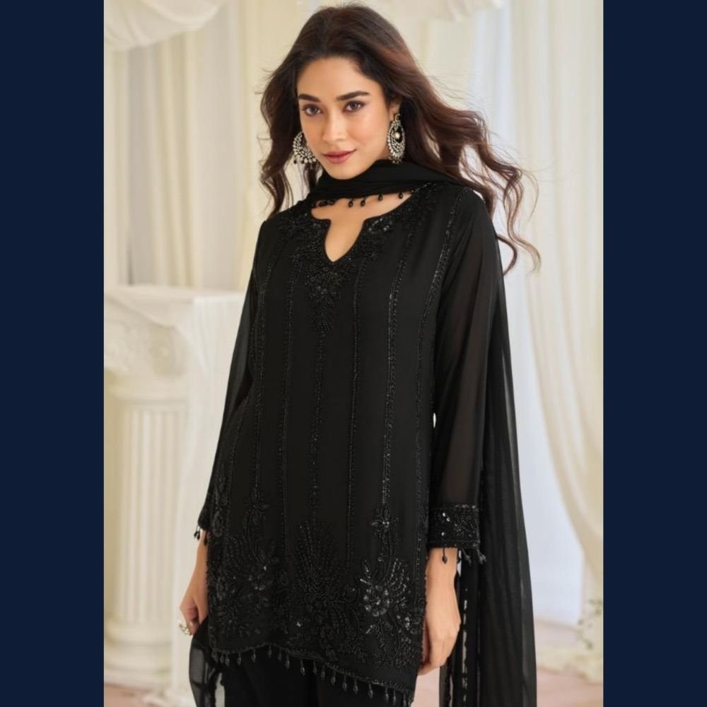 🖤 Sophisticated black kurta, pant & dupatta set designed for a timeless elegant look