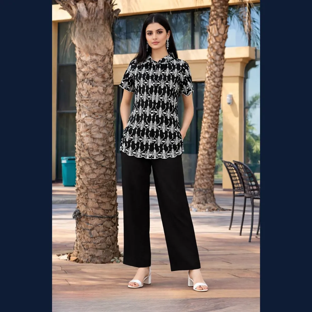 🖤 Chic black tunic and pant coord set with contemporary appeal