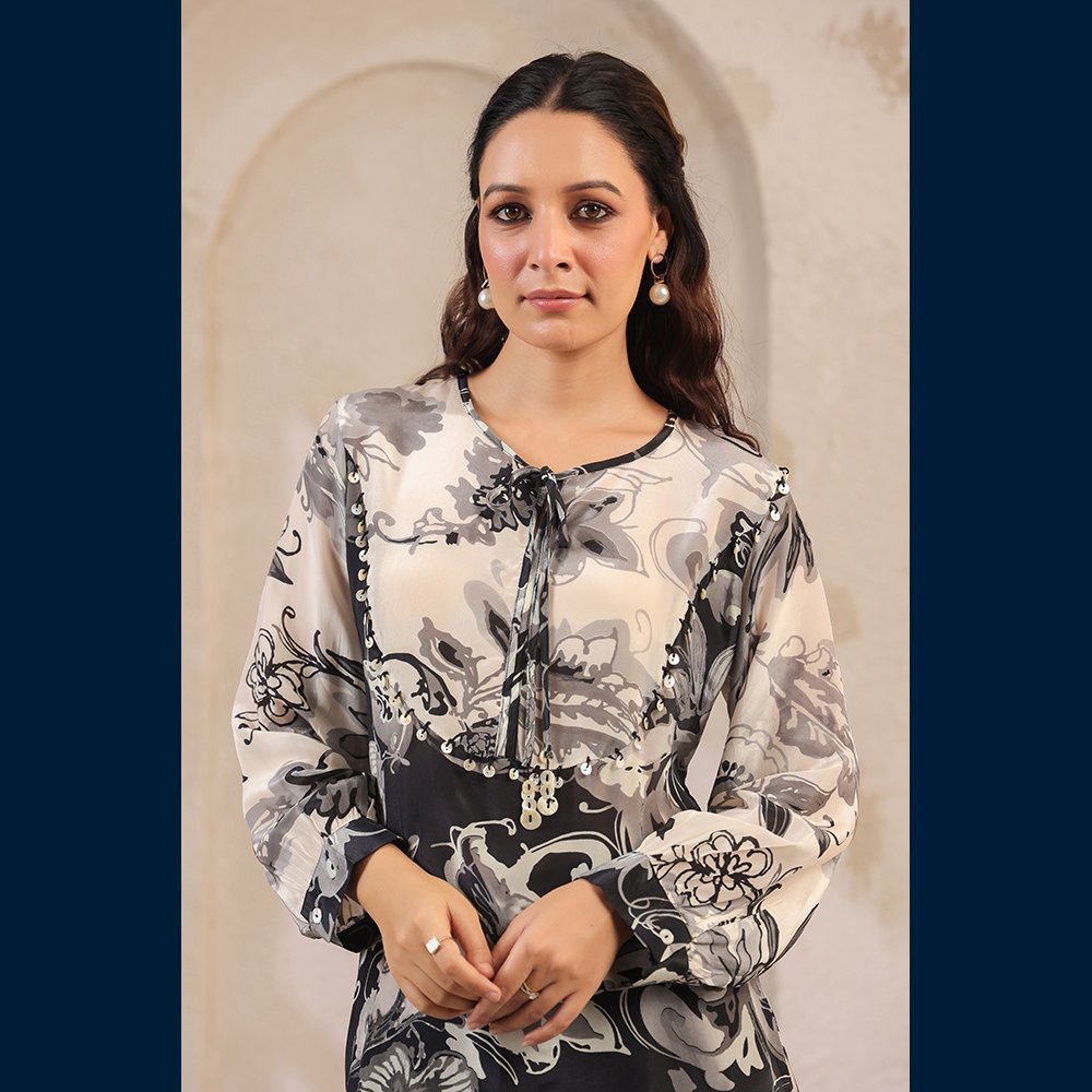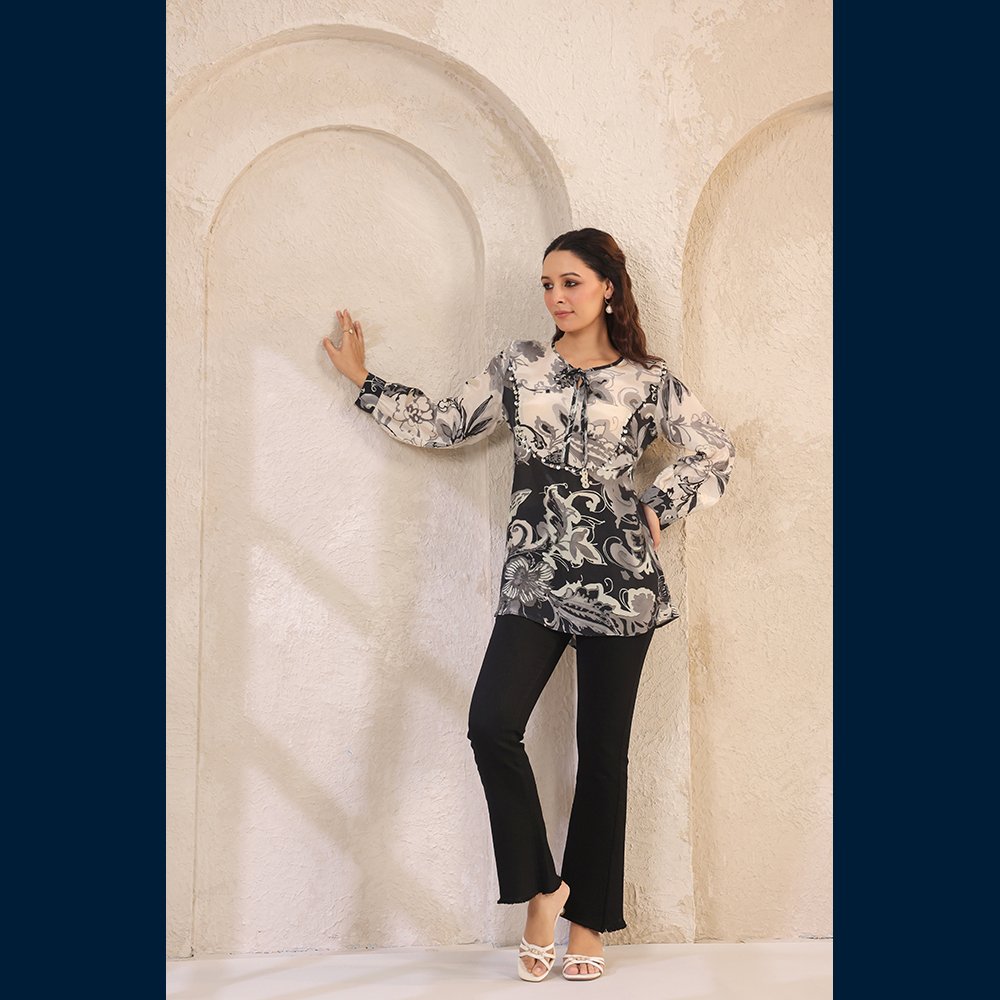 • Chic monochrome floral print for an elegant touch 🌼