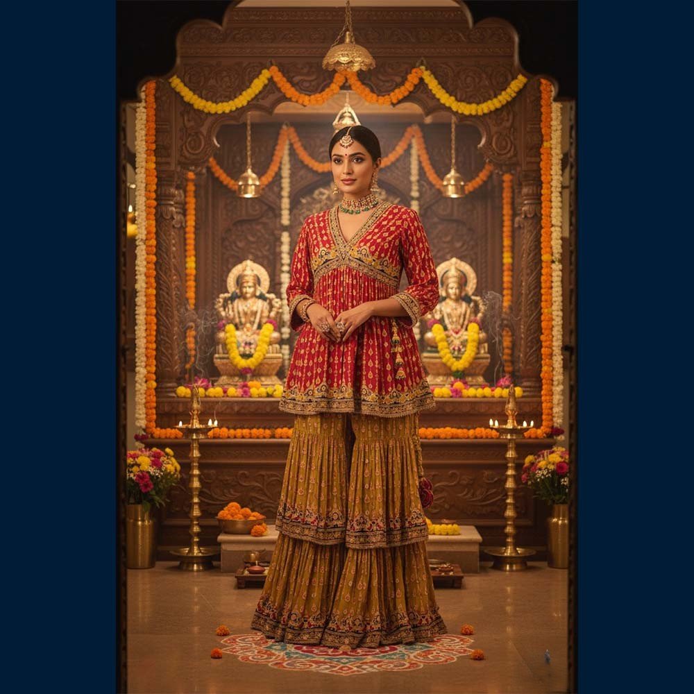 Soft, flowy fabric ensures movement that looks graceful during pooja rituals and festive celebrations
