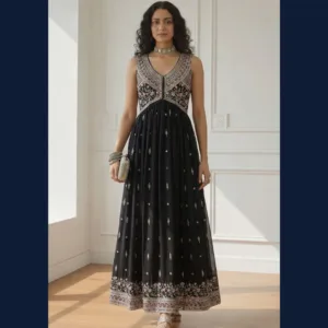🖤 Elegant black floor-length gown designed for timeless sophistication