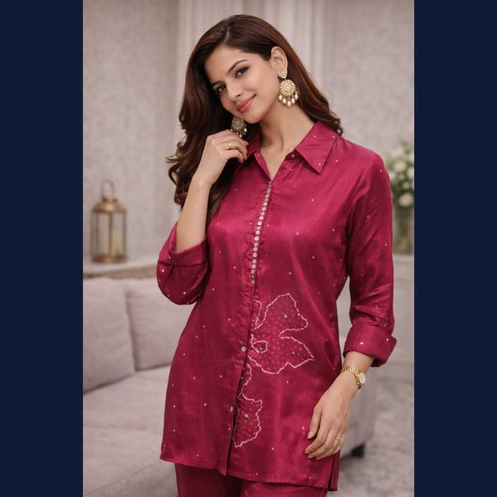 Pair this ruby shirt with tailored trousers, palazzos, or denim and statement earrings. Finish the look with sleek heels or flats for a chic and sophisticated outfit. ✨