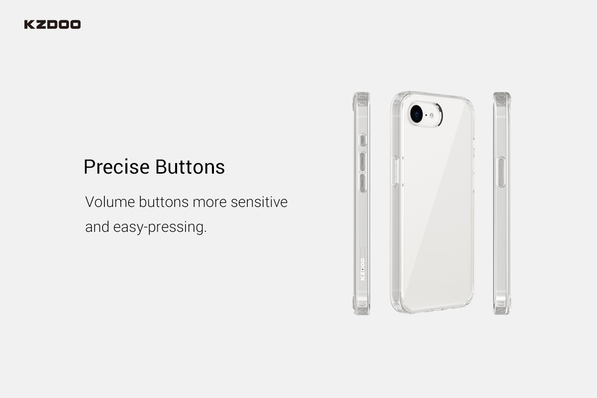 • The side buttons are covered with responsive, clear TPU material for easy access while maintaining a uniform look.