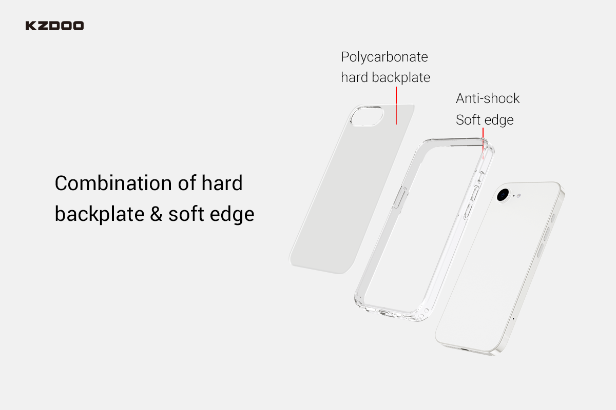 • Transparent hard polycarbonate back with hard, providing both visibility and shock absorption.