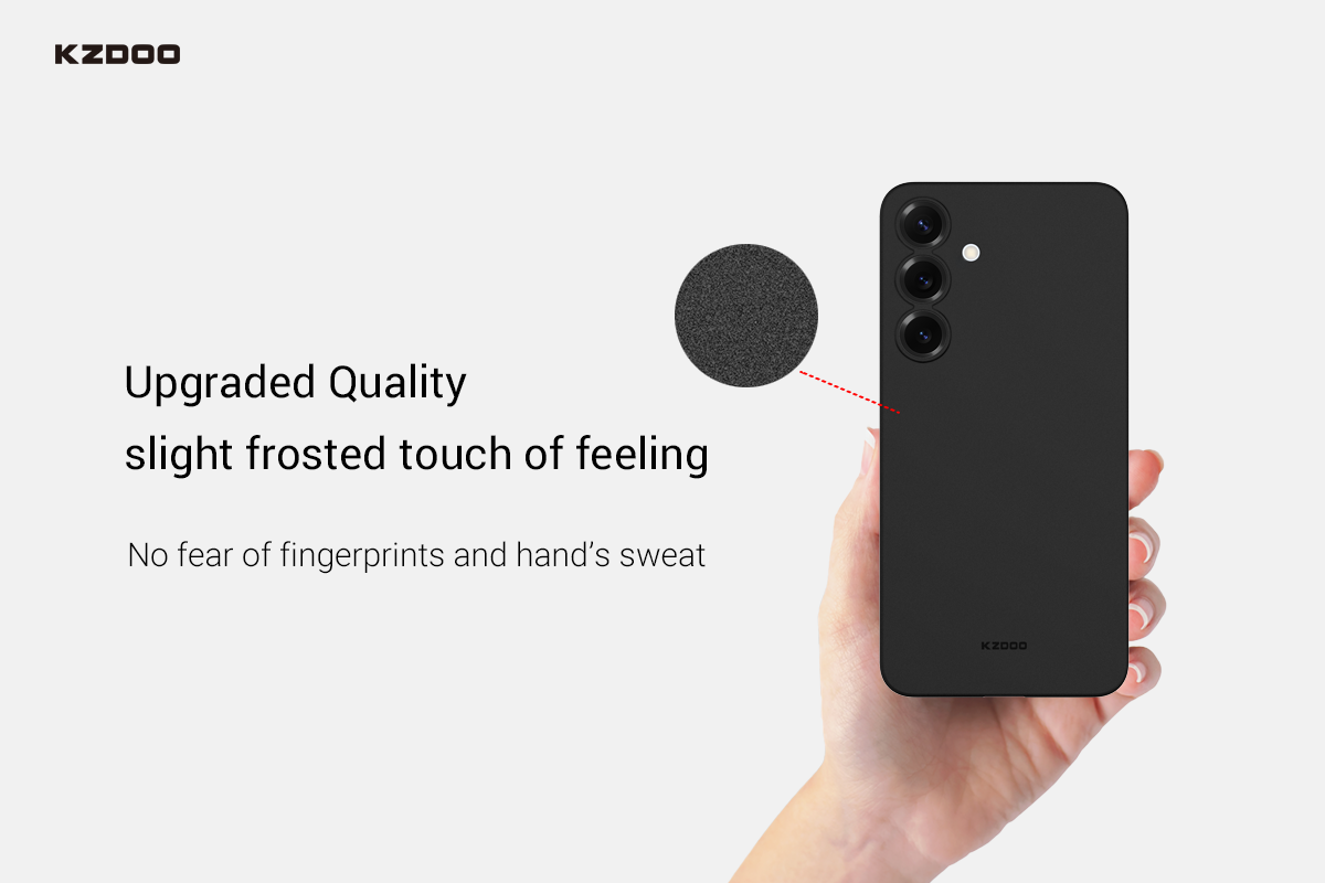 > A matte, anti-slip finish for a secure grip and reduced fingerprint smudges.