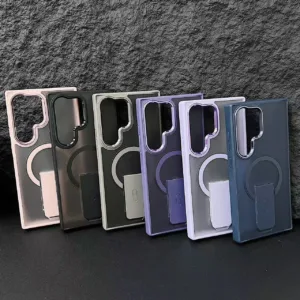 Protect your phone with style and functionality. This frosted transparent magnetic case features a sleek matte finish with a built-in magnetic ring and sturdy foldable kickstand. Designed for modern users, it offers strong protection while maintaining a slim and premium look.