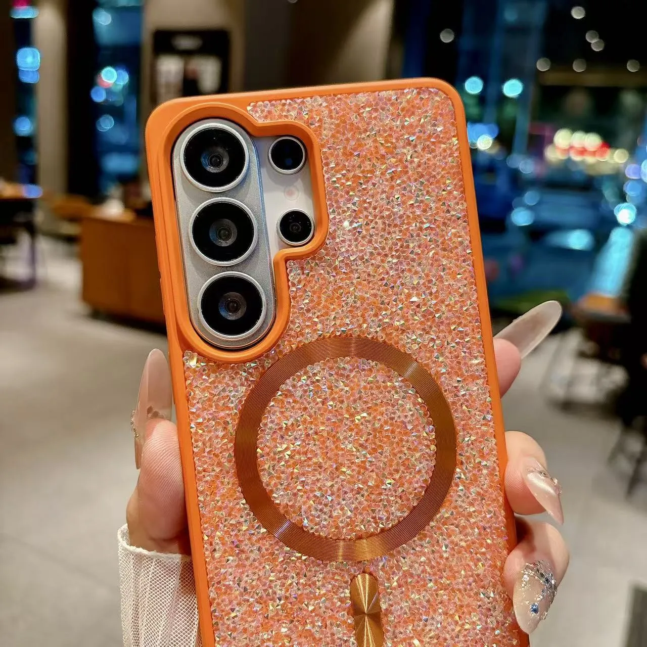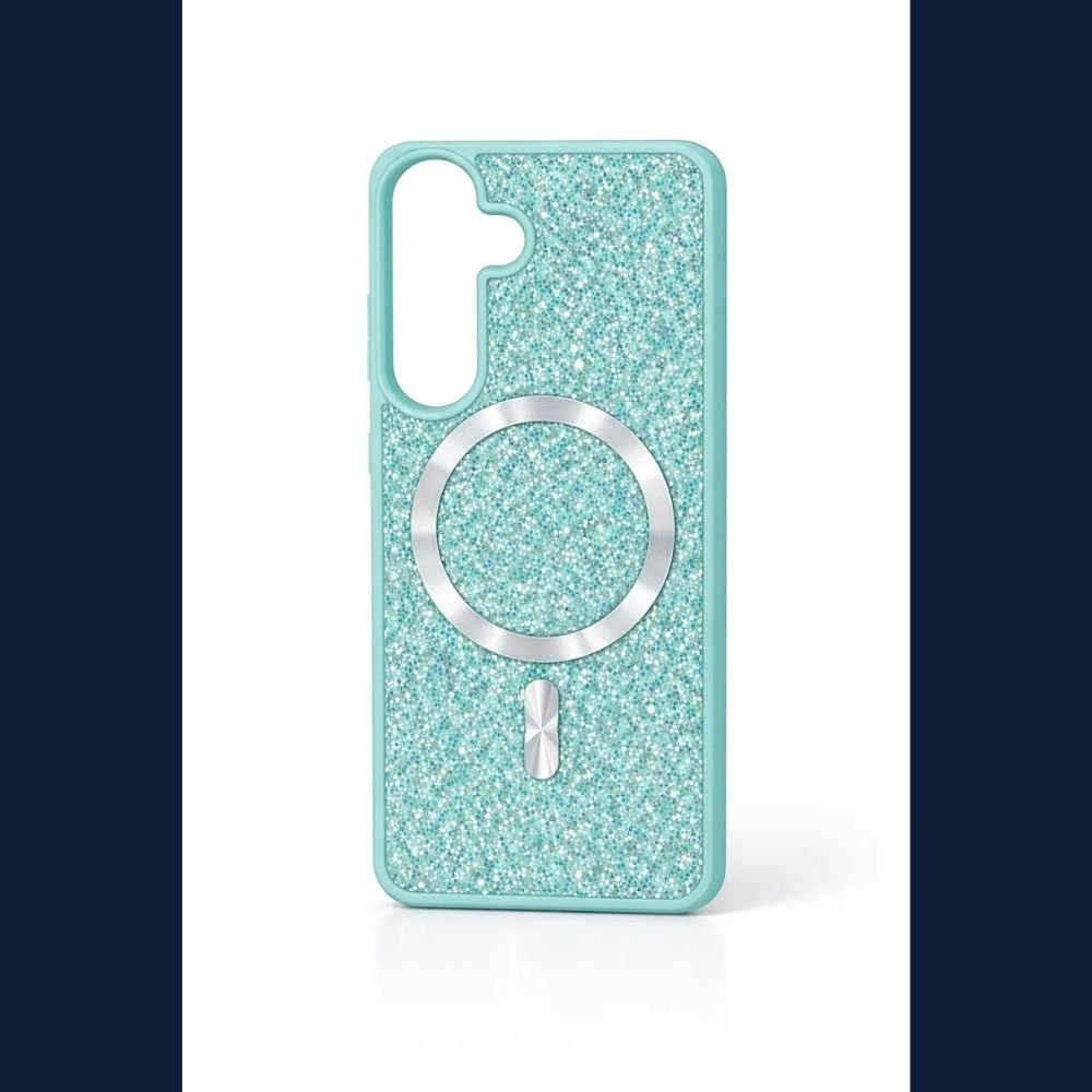 A sparkling glitter phone case with built-in magnetic ring, designed to combine glamorous style with magnetic convenience and reliable protection. The shimmering textured back creates a luxury sparkle effect while remaining slim and modern.