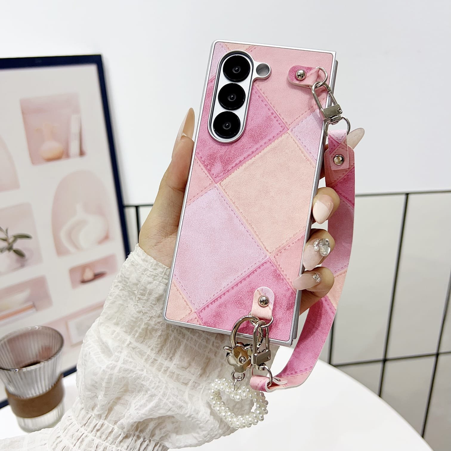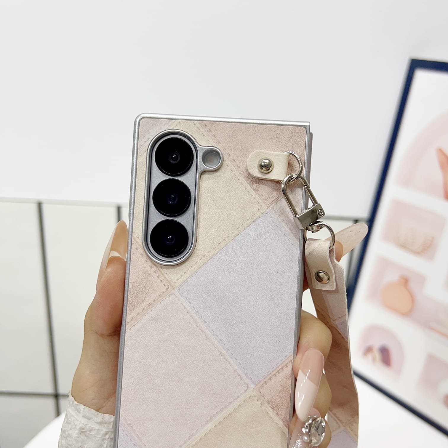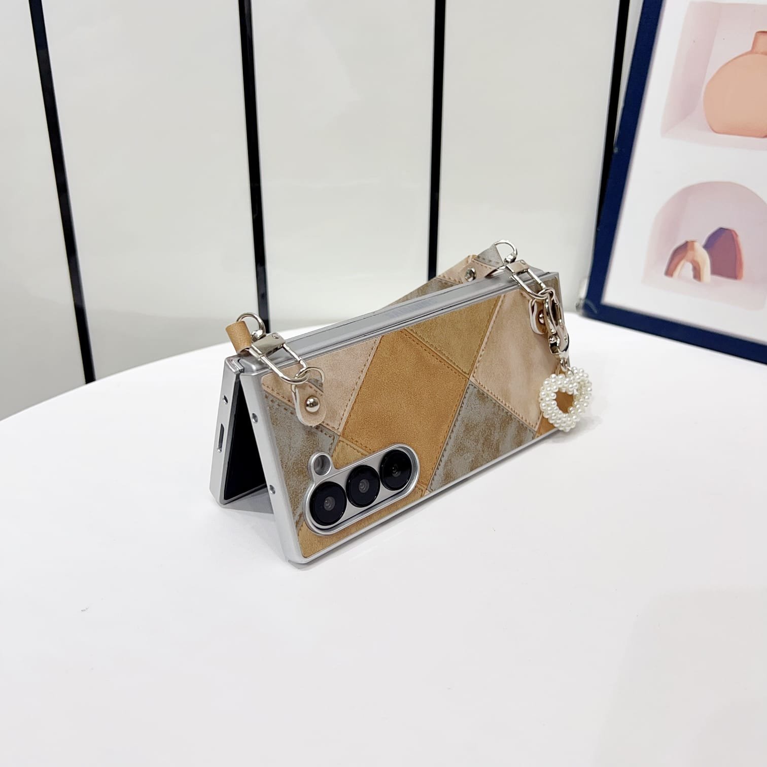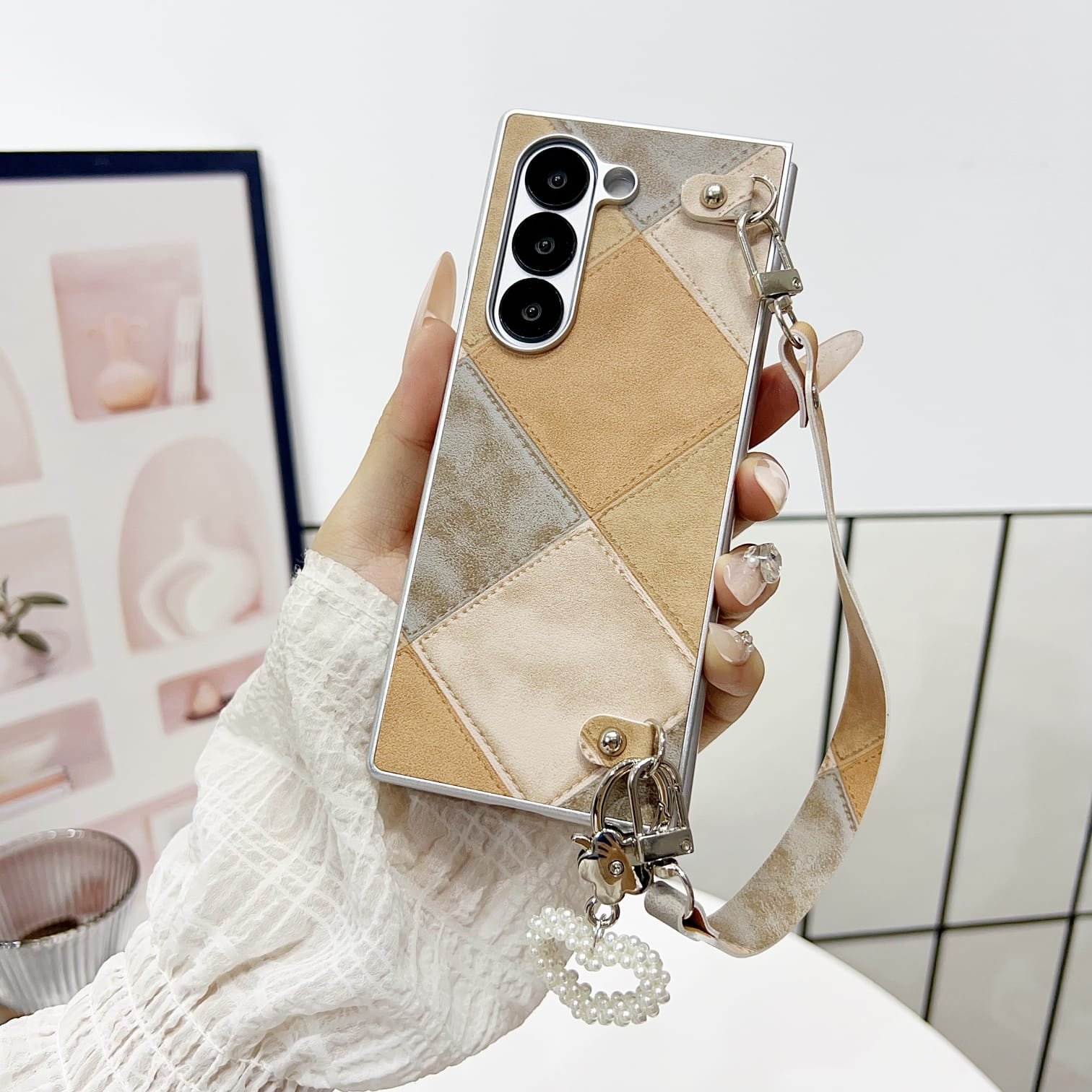 Comes with a detachable matching wrist strap made from the same patchwork fabric.