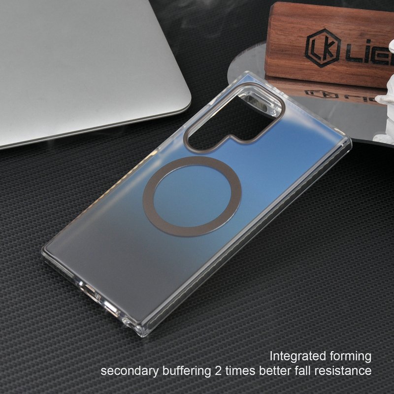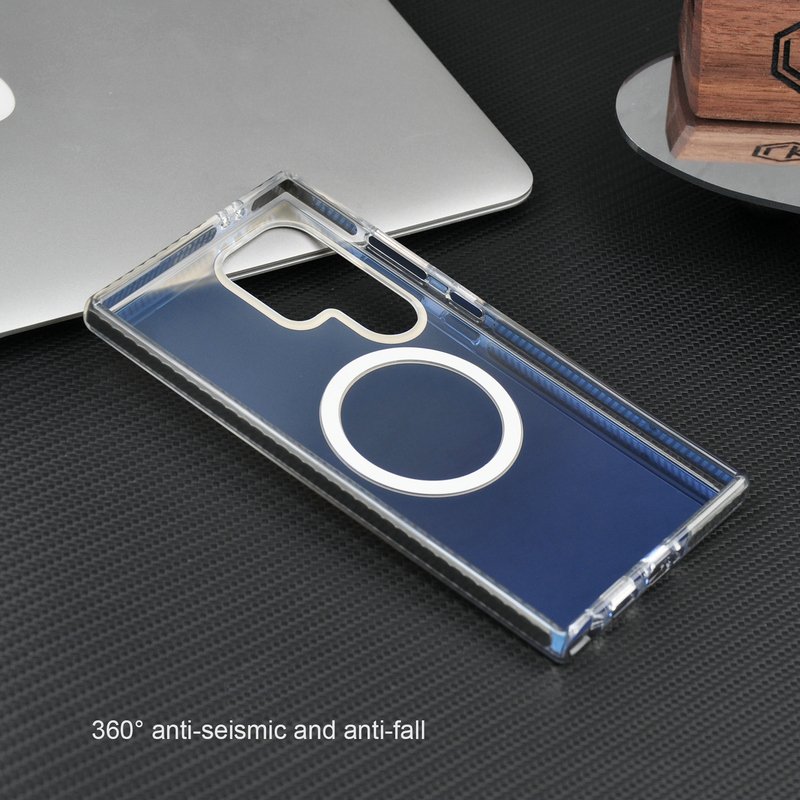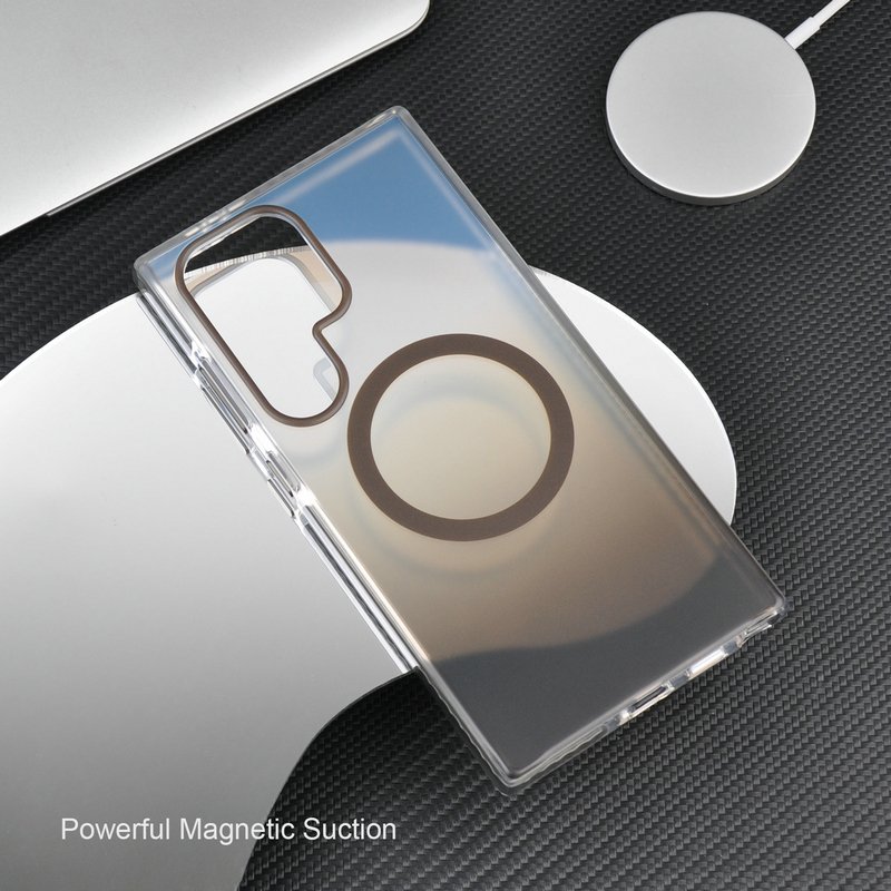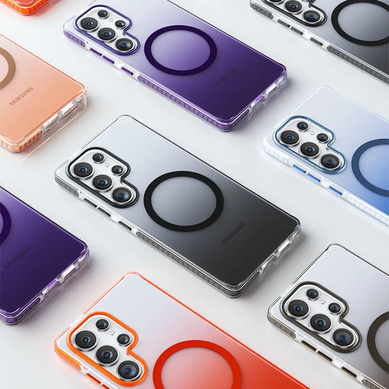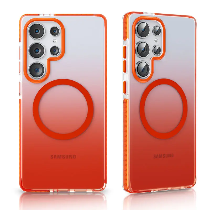 circular MagSafe-style ring design printed in orange on the back — perfect for magnetic accessories like wireless chargers or car mounts.
