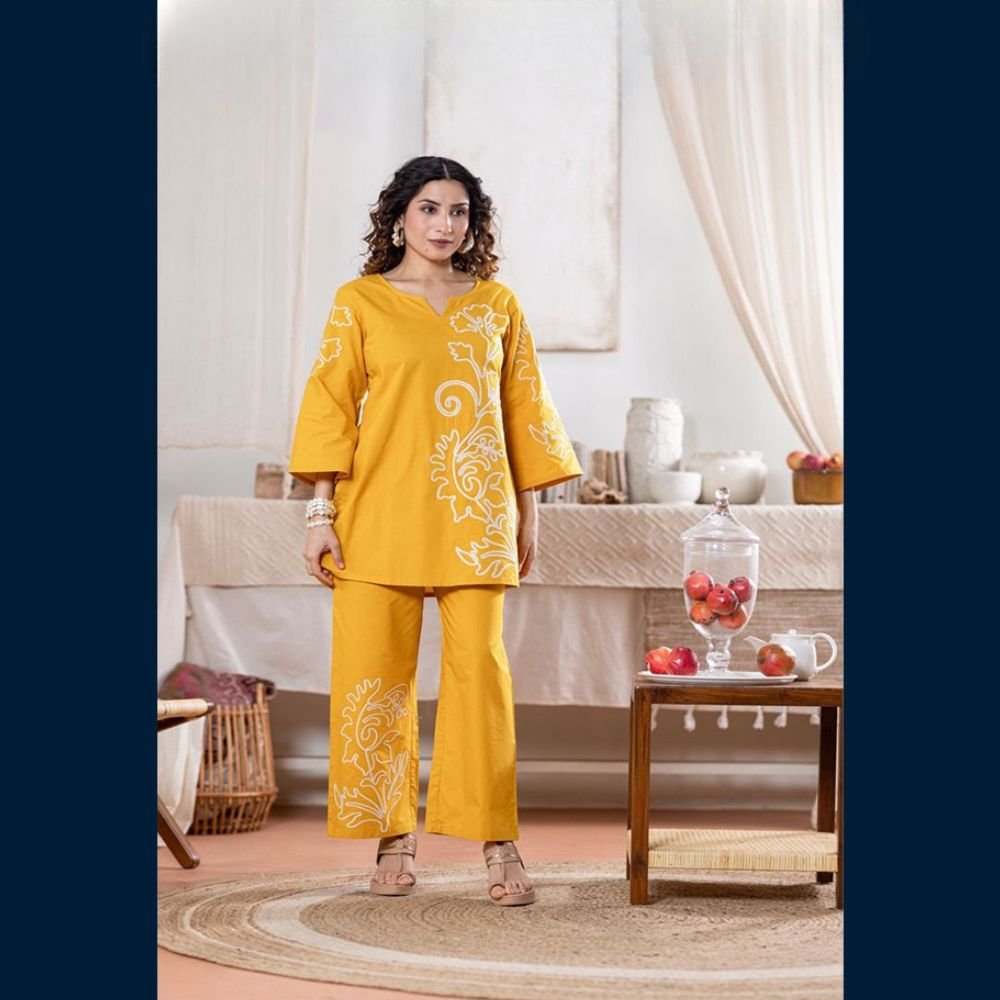 💛 Vibrant mustard yellow co-ord set designed for a bold yet elegant everyday look