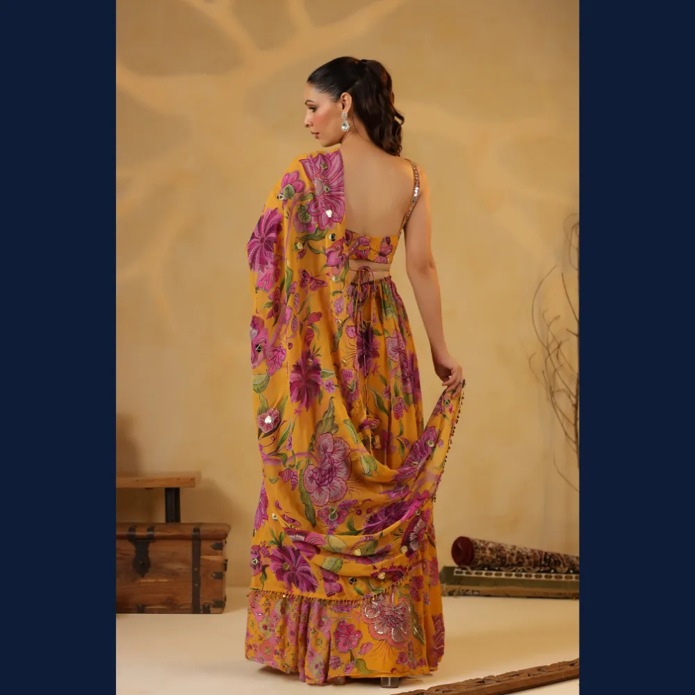 💎 Style with statement earrings, soft curls, and dewy makeup for a vibrant festive look