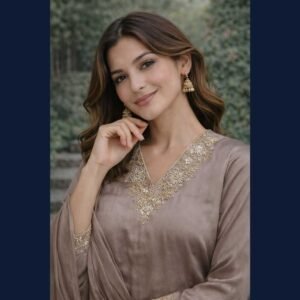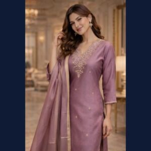 Rose Mauve Embroidered Kurta Set with Dupatta