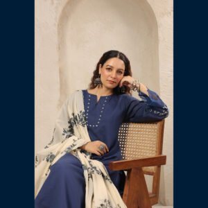 Midnight Blossom Embroidered Kurta Set